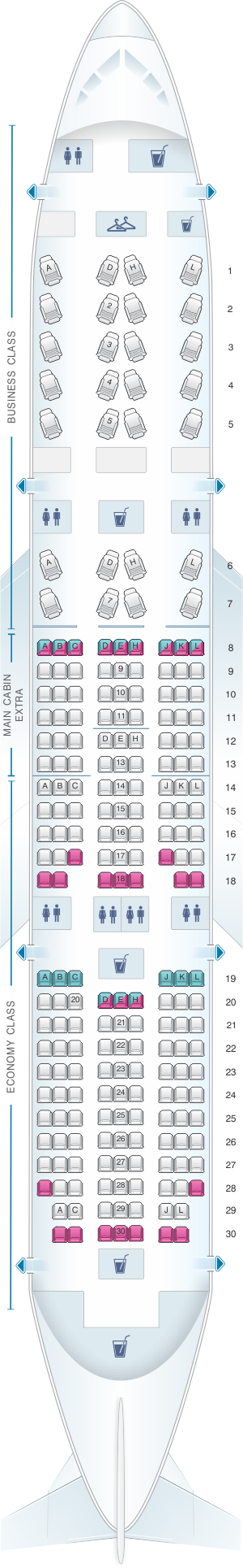 | Business Class | Lie-flat | 21" | 28 |