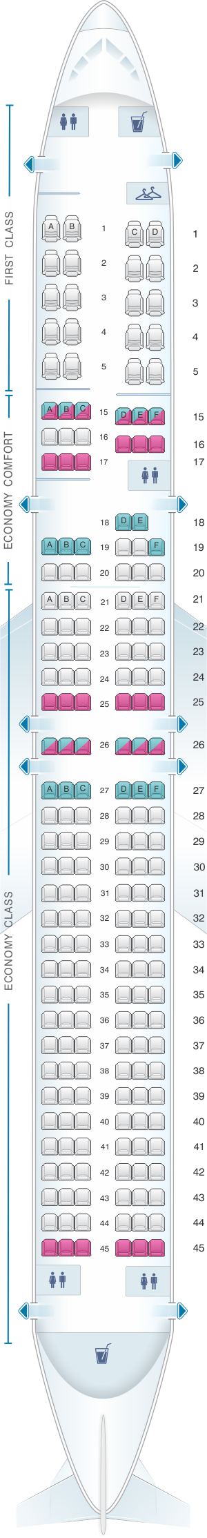 Very comfortable with ample kneeroom. Plenty of seat width and elbow room. Entrance to aircraft is thru mid-door. Therefore, after boarding, turn left to first class and economy + seats. This provides more privacy because other pax are not coming forward to use restroom, but it takes longer to deplane because all classes leaving thru mid-door. It was a snack-only flight, which were all carbs. Even though it is not a meal flight, I think a more substantial snack should be offered, such as a sandwich or cheese/fruit tray.