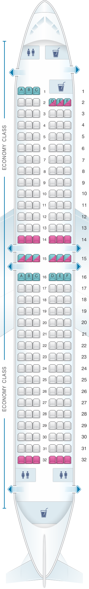Row 18 with extra legroom, although it is over the wing you could still see fine, was pleasantly surprised..this seat is 2 rows behind the emergency exit doors which have even larger leg room. As in the middle of the plane a choice of 1 loo at the front & 2 at the back..Seats reclined a few inches but enough for a comfortable ride. No entertainment on the flight but a very useful USB port