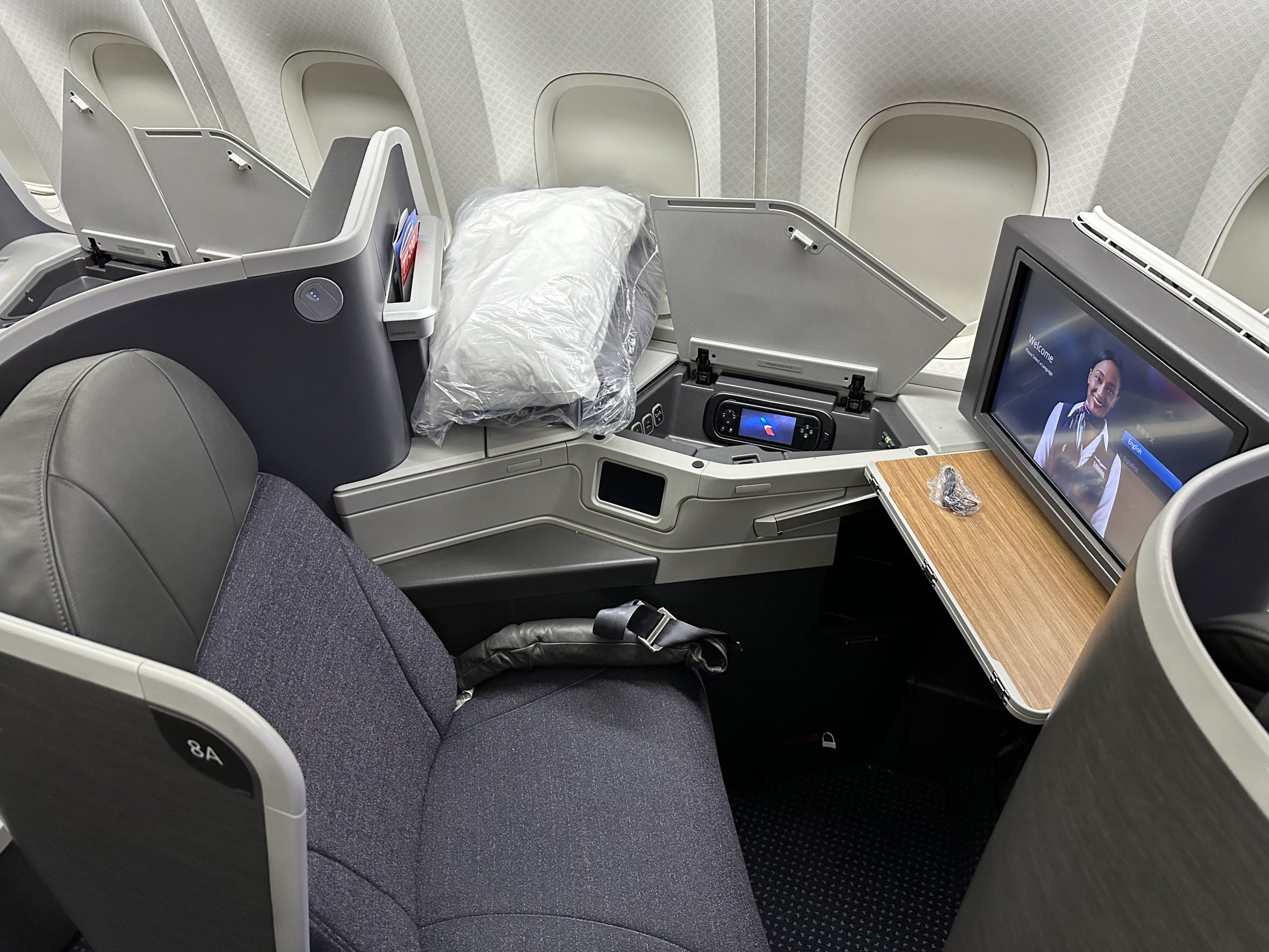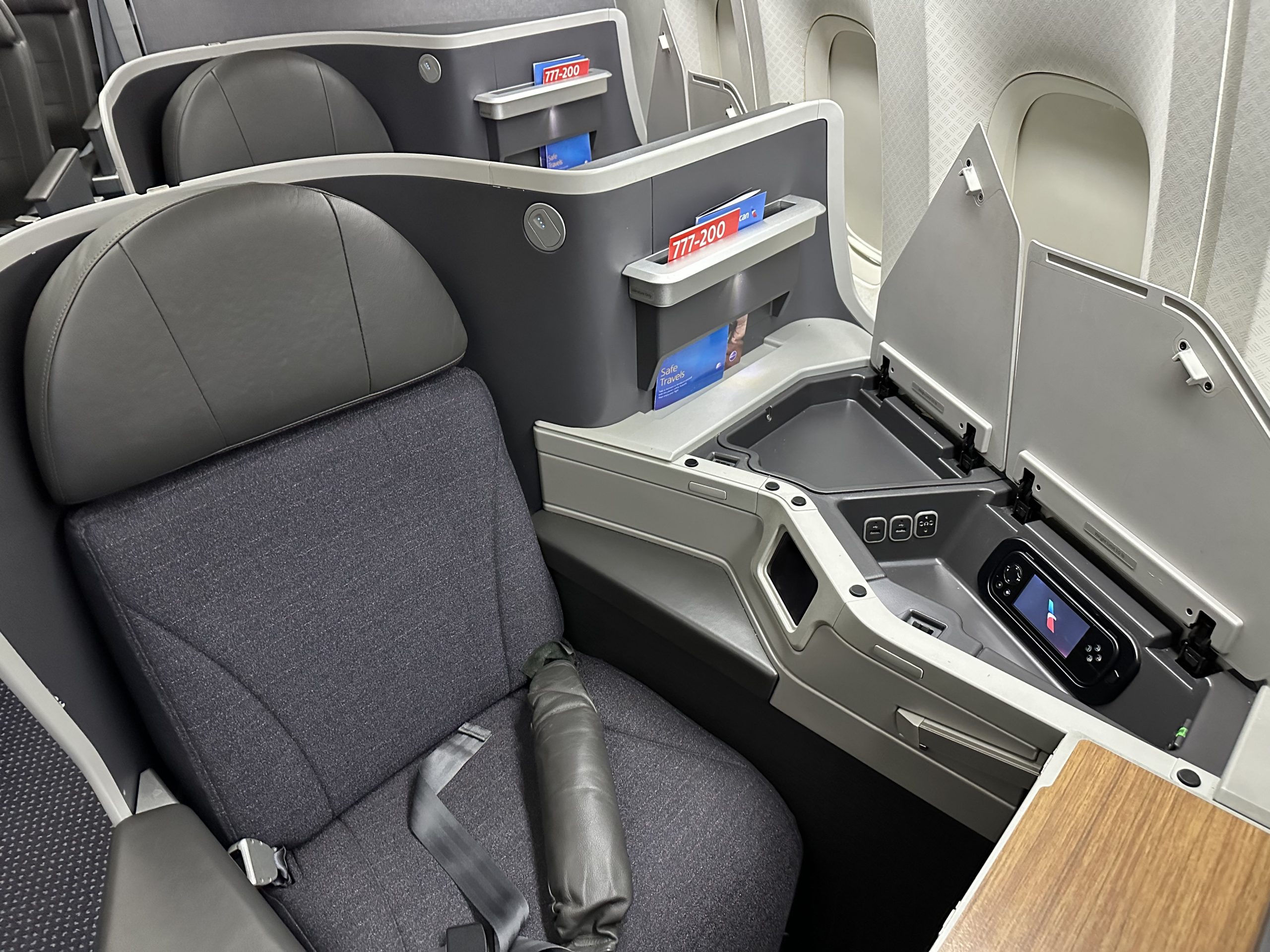 Nice/average lie-flat business class seat. Be aware some AA aircraft have alternating rear-facing seats.