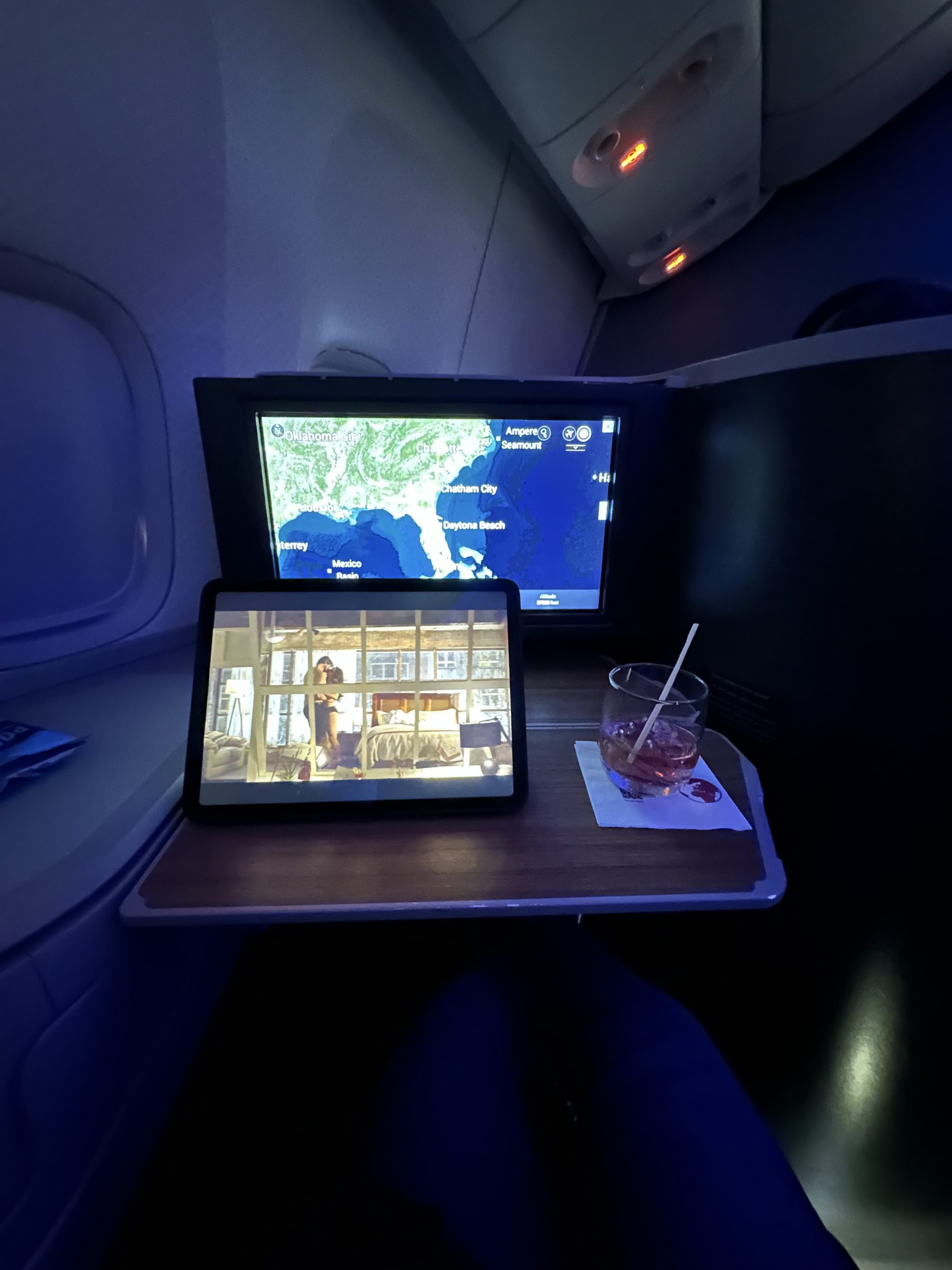 Not worth the $1500 extra. Felt squeezed by the narrow width since a lot of space was taken up by a shelf by the window. Lights were on during the flight. Mediocre food and very limited drinks menu.