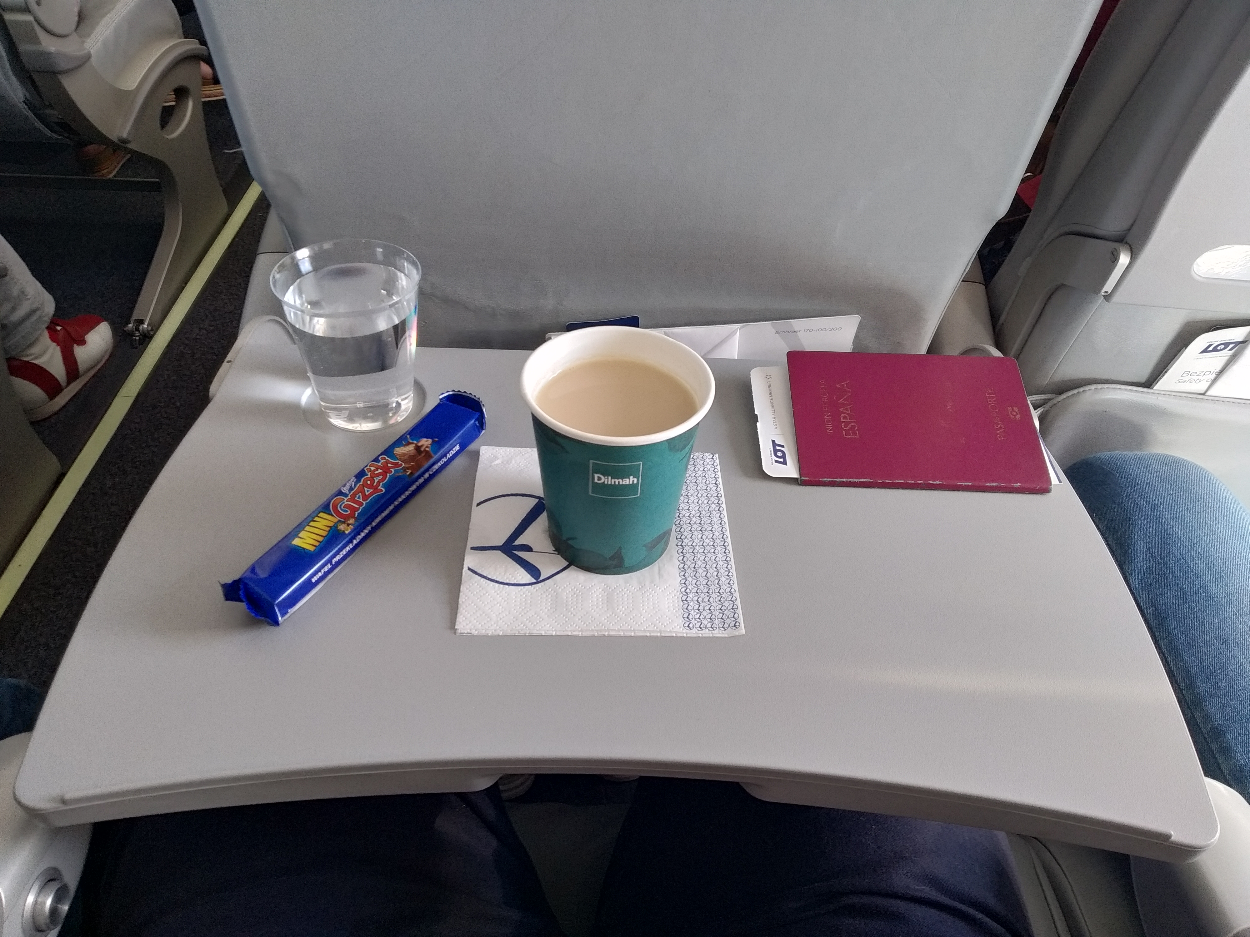 Cabin crew offered water, coffee and teas and a chocolate table bar, they managed to give us everyone despite the short flight time.