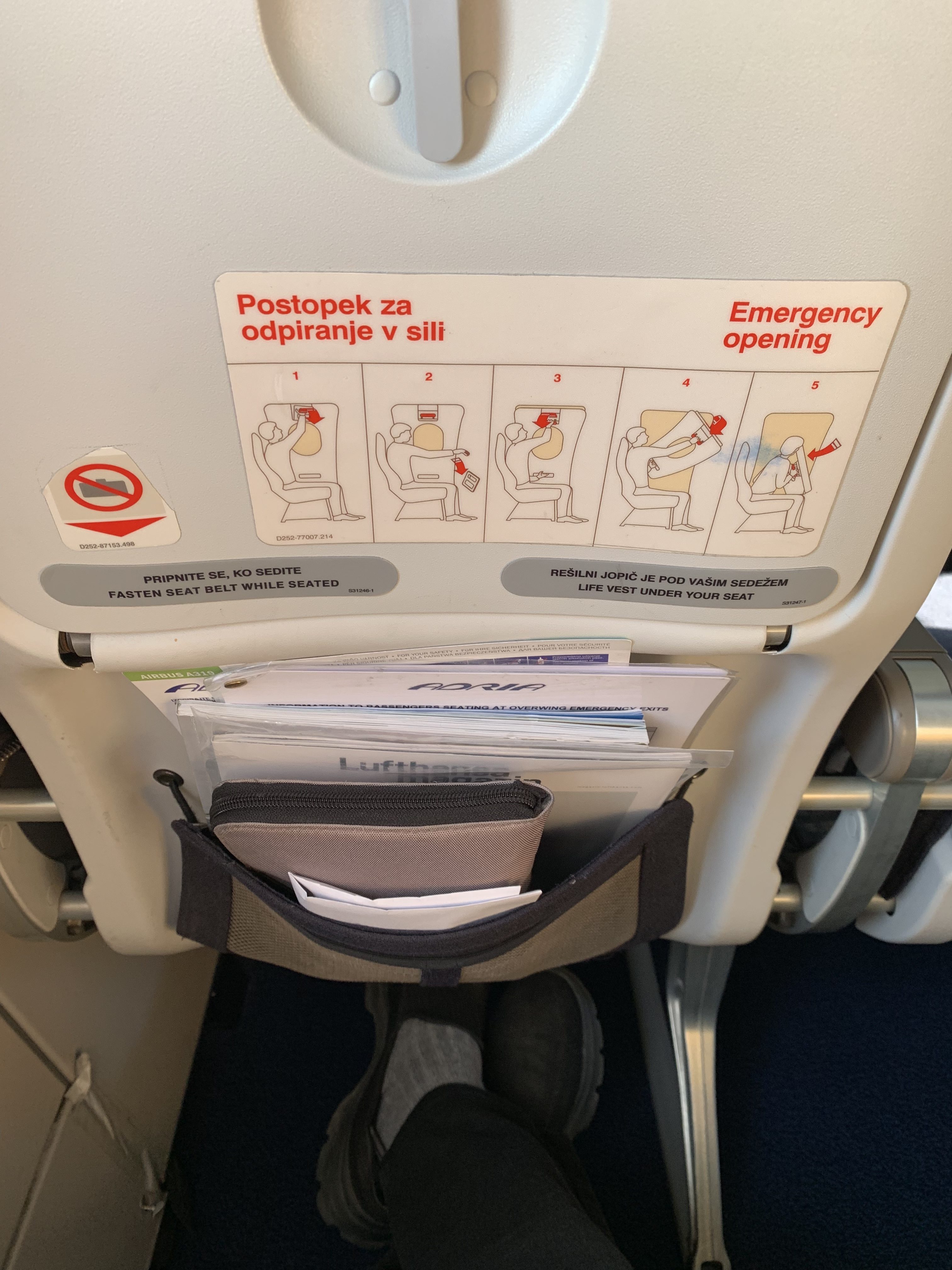 The seat layout of the usual Adria Airbus A319 operated Bucharest-Munich-Bucharest S5-AAX differs from your plan! You need two different versions of Adria A319 seat plans. Row 10 is the Exit Row on S5-AAX. 10A is a superb seat, comfy with plenty of leg room. There is a nice little holder for a drink in addition to the tray table .. handy especially in turbulence. The aircraft’s appearance internally is excellent, clearly refurbished and well maintained.