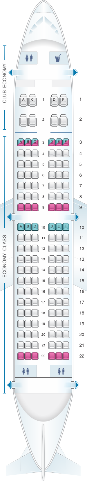 | Club Economy | 36" | 18" | 8 |