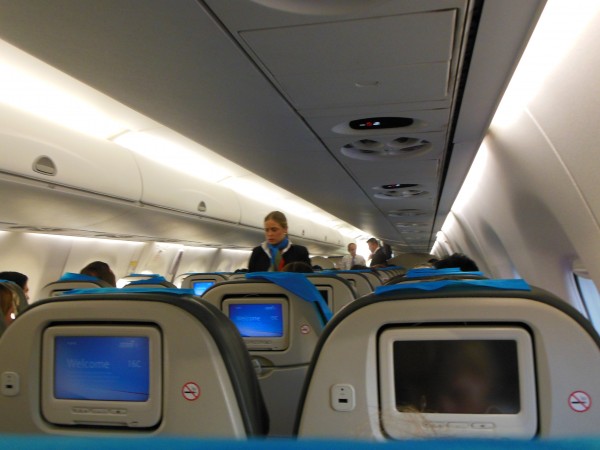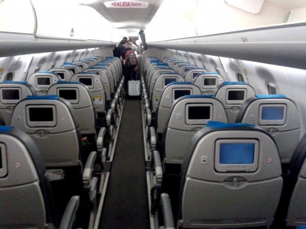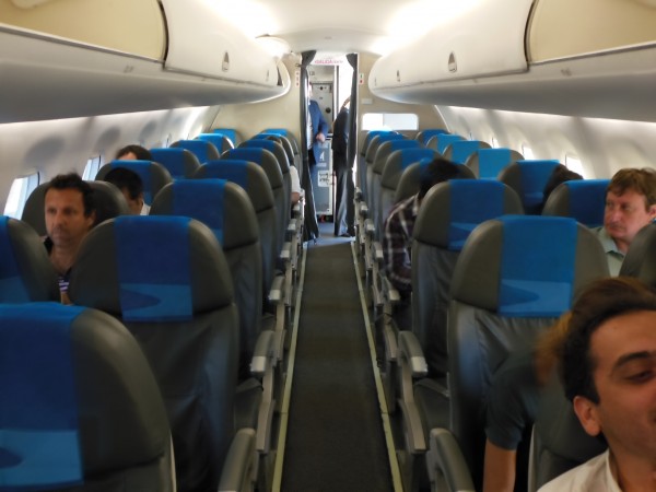 Buen avión, muy cómodo por tener los asientos "de a pares". Ideal para travesías de un par de horas (o de rango medio, ya que lo califico mejor que a un B737) En las ocasiones en que viajé por esta compañía siempre ha tenido puntualidad y seguridad. Recomendable. En este caso, la fila 10 precede a las "salidas de emergencia", por lo que los asientos no se pueden reclinar. Intentaré evitarlos en la pxma. ocasión.