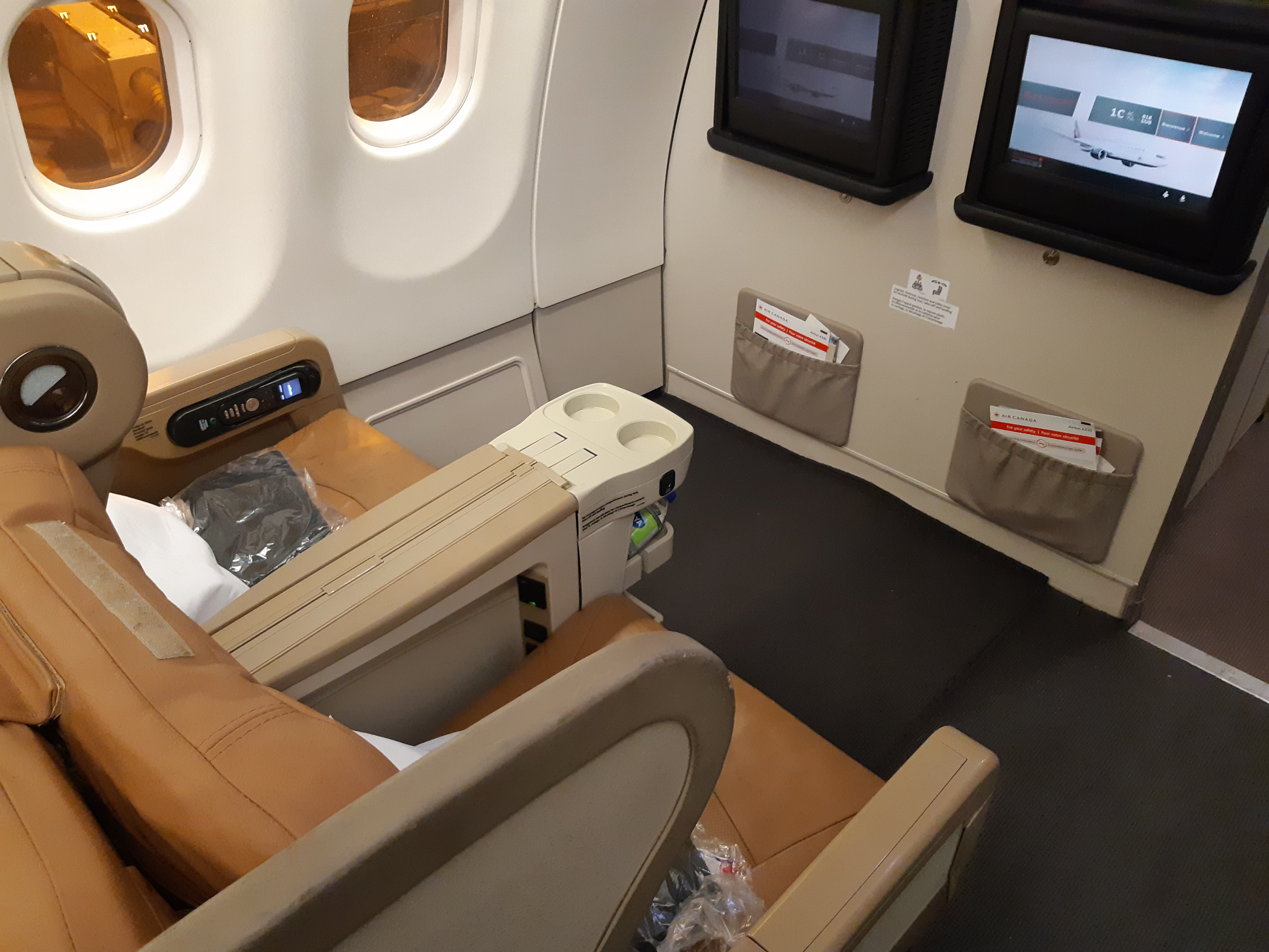 First, This is the best seat configuration for the benefit of customer satisfaction. 2-4-2 seating with two sets of two washrooms. (economy class) in my opinion as a frequent international traveler. Comfortable fabric seats with limited but adequate reclining feature. Full flight with very efficient, considerate service. Adequate pitch and leg room for average person size.