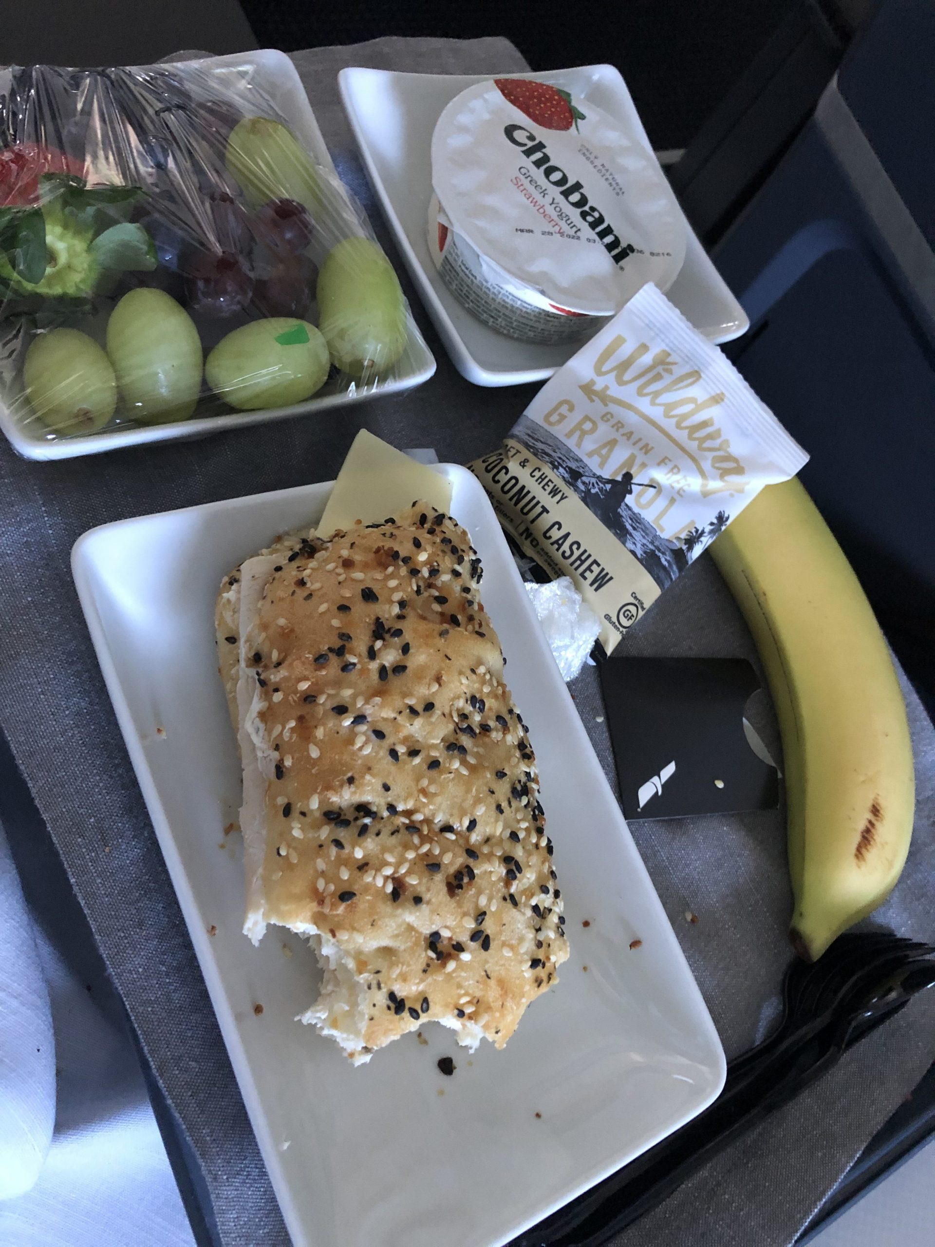 First I’d like to say are the videos online of First Class look amazing, that being said, I was disappointed . I was expecting a screen on the seat in front of me where I can watch videos or the route we were flying. There was nothing! There was a blanket but no pillow on my seat , but that was no big deal since I didn’t use either one. I had the spinach pasta dish which was very good and there was something with an olive on it but I didn’t know what it was. Next was the warm chocolate chip cookie was very good. My seat was nice and wide but when it comes to getting up was a different story . The armrest between the seats are long and makes it hard to get out from the window seats if the seats in front of you are reclining back. I spilled a drink. All in all I would not waste money on a first class accommodations.