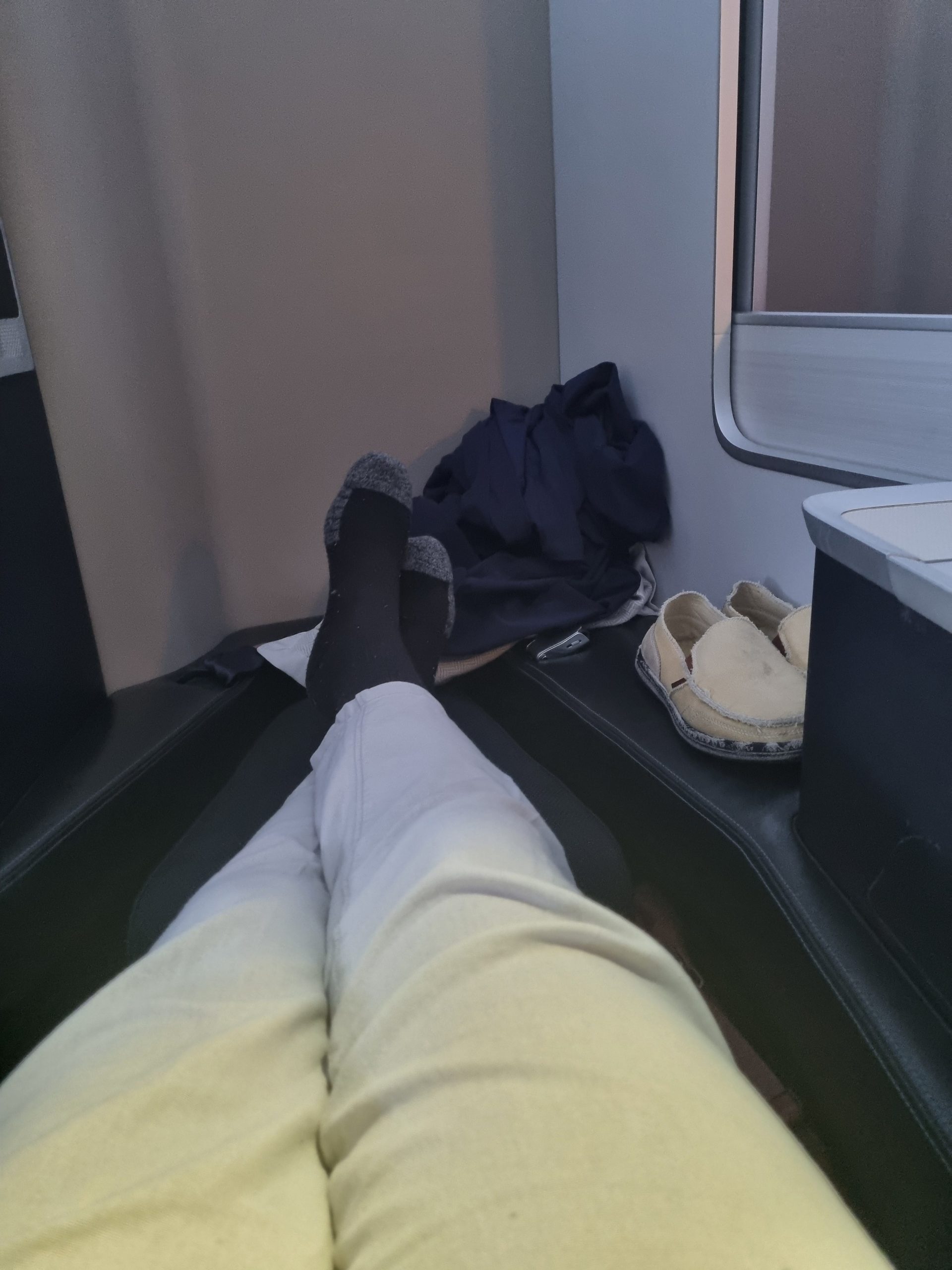 This seat is close to the toilet as you can see so you hear people flushing the loo and they tend to queue up outside so you get bumped into. The infotainment system had to be reset three times before it started working. Food is a joke, bland, uninspiring and difficult to eat in such a confined space. Glad I've had a decent breakfast. Would have preferred a top quality sandwich instead
