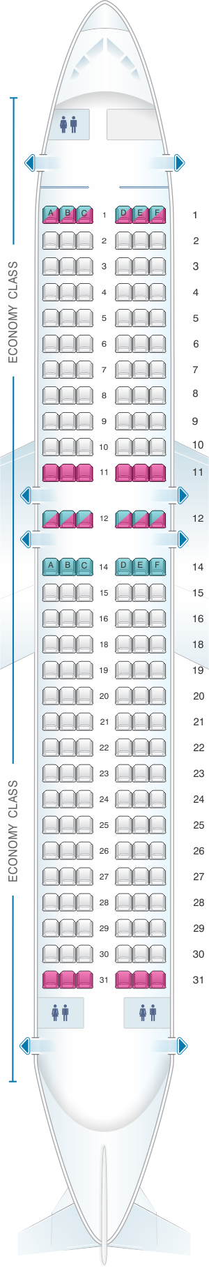 Seat Map Bulgaria Air Airbus A320 all economy