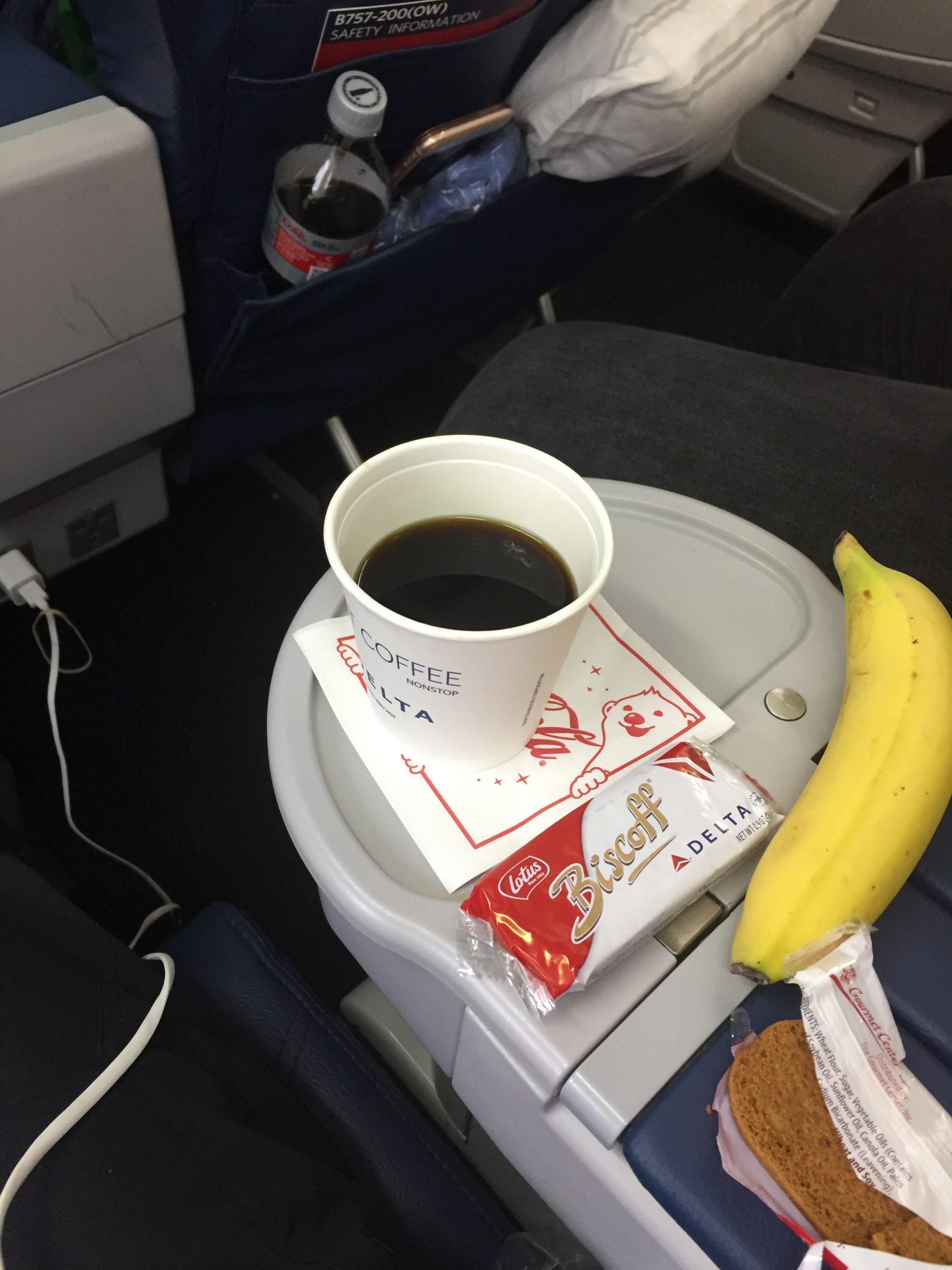 Very comfortable with ample kneeroom. Plenty of seat width and elbow room. Entrance to aircraft is thru mid-door. Therefore, after boarding, turn left to first class and economy + seats. This provides more privacy because other pax are not coming forward to use restroom, but it takes longer to deplane because all classes leaving thru mid-door. It was a snack-only flight, which were all carbs. Even though it is not a meal flight, I think a more substantial snack should be offered, such as a sandwich or cheese/fruit tray.