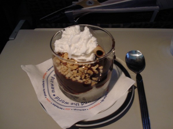 Salad with tomato and cheese, pasta with vegetables and a cookie. (pasa wasn't that good , and after 2 months of eating the stuff my italian granny does...) But i was hungry. At mid flight some Ice Cream that the kind F/A brought to me. An hour before landing, some snack: Pizza Margherita and a cookie. |