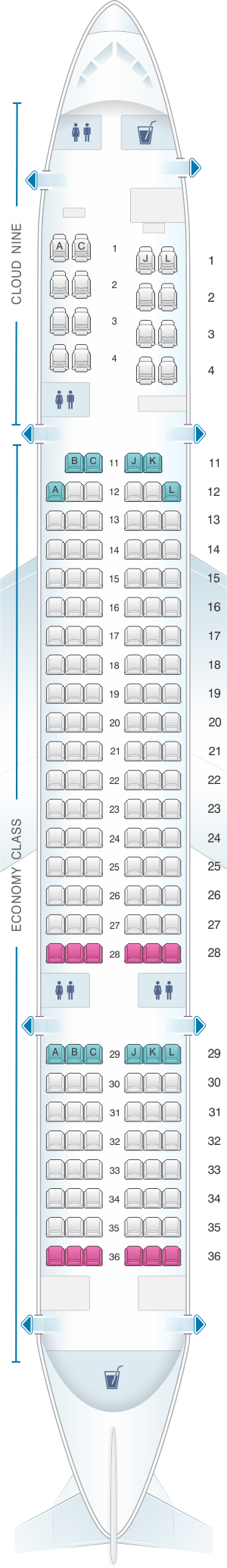 | Class | Reclination | Pitch | Seats |