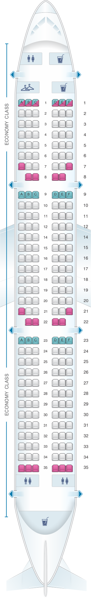 | Economy Class | 31" | 17" | 148-200 |