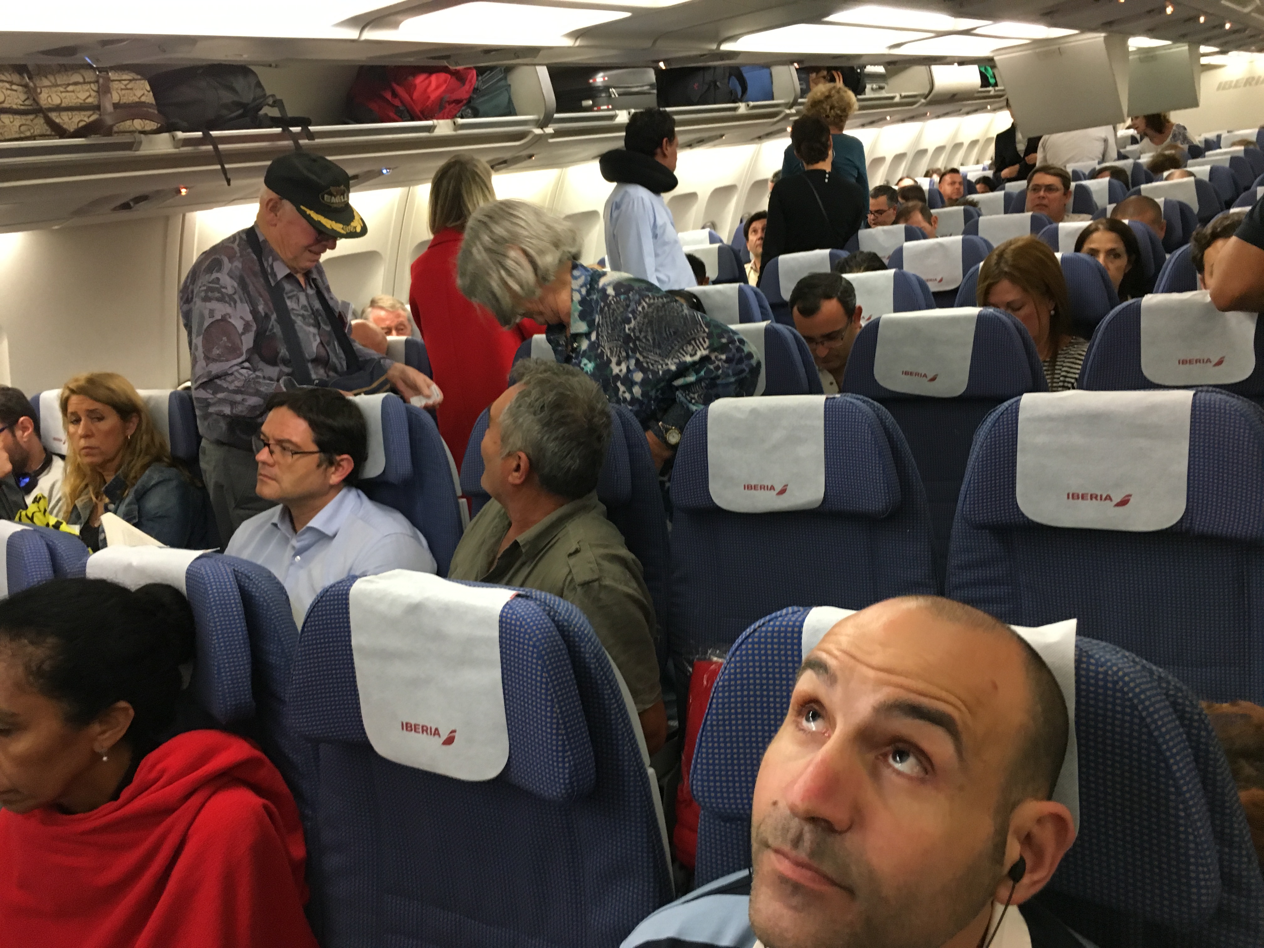 Leg room and recline space is fair. Seat width is OK too. Only shame that Iberia uses its oldest A340 for such a frequented route. This must be one of the first A340s ever acquired by Iberia. Food quality is very poor. Entertainment system is very old too. Better gear up with some media or a book if you stay awake (night flight)