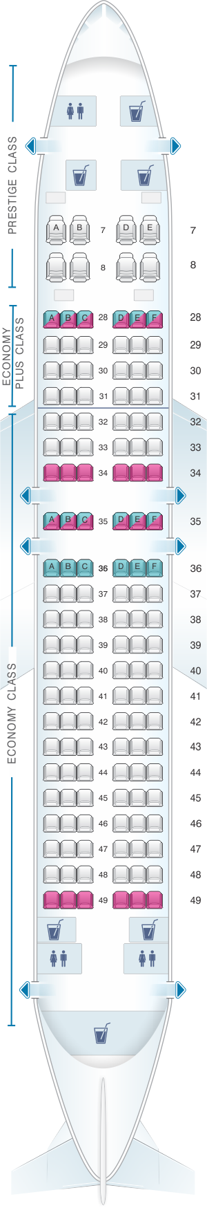 | Economy Plus Class | 38" | 17.8" | 24 |