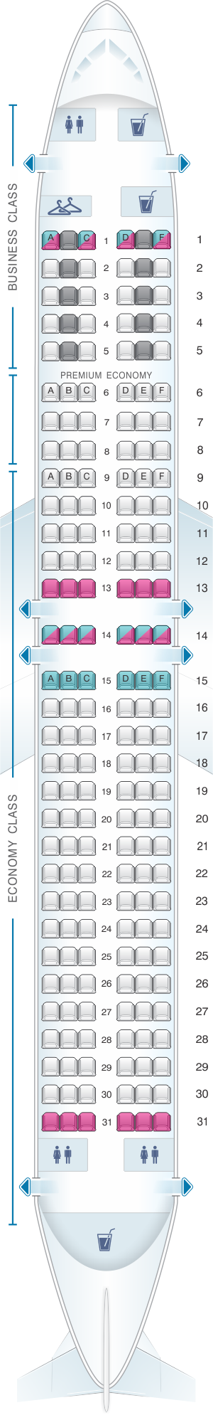 | Premium Economy | 32" | 17" | 18 |