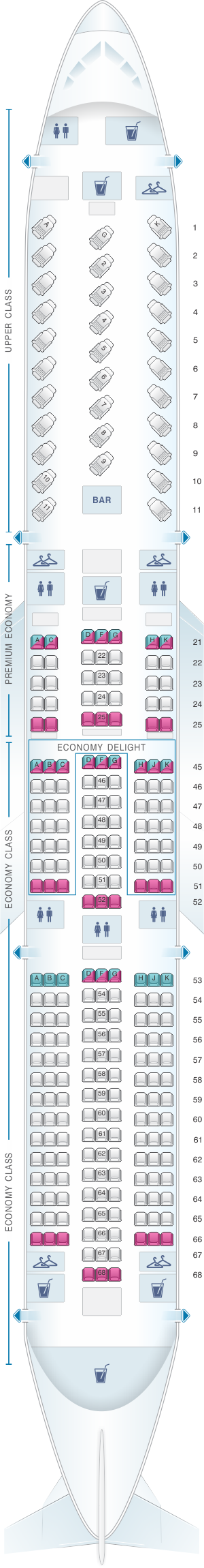 Service was good, in fact better than I've experienced on previous transatlantic flights with Virgin. The food and drink seemed to keep coming. The location next to the galley didn't really cause any issues and the lack of a toilet at the back was a blessing for the lack of other passengers passing by. It was however a farce in the middle of the aircraft with continual queues and people loitering around row 21. Presumably some had paid extra to sit in these seats, if so I'd have wanted a refund. In many ways being at the back was nice for being 'out of the way'. Don't like the 3-3-3 configuration, it really doesn't make sense and inevitably forces families apart and strangers next to you in the already narrow economy seats. A 2-4-2 would make far more sense. Overall no more comfortable than anything else I've travelled on. Fancy coloured lighting and bigger windows are ok to look at but a wider seat would be nice when spending 10 hours on a plane. The problem is that going economy one expects nothing special and so gets nothing special. |