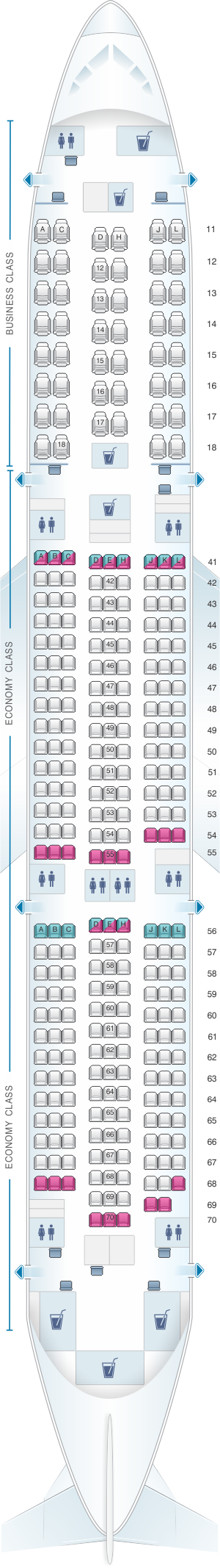 | Business Class | 46" | 30 |