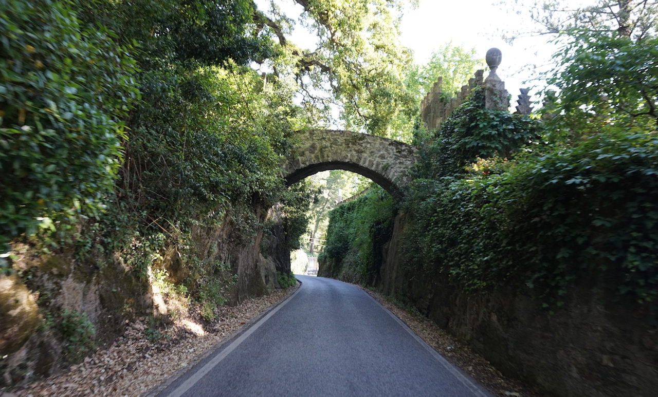 We crossed the arch to the end of the terrace where we got to look out over all of Sintra from up above, and as we traced our steps, we got a group photo with the arch of the Seteais Palace with the Pena Palace just below… an AWESOME photo!