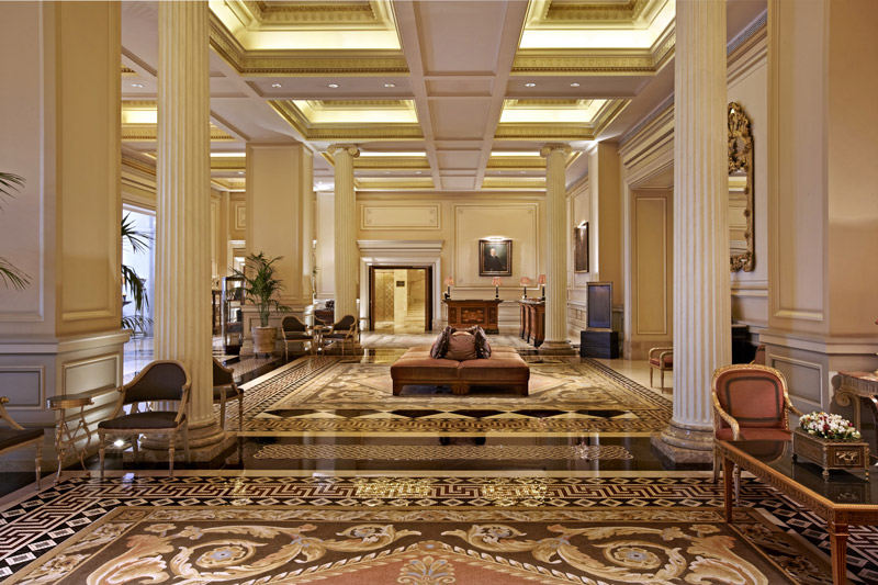 On September 16th we landed in Athens from Barcelona at about 2:30 pm in the afternoon. We took a taxi to Hotel Grande Bretagne. The hotel is located in an unbeatable location right next to the best cafes, restaurants and shops in the city with some spectacular views of the Acropolis. As soon as we arrived in the taxi, the bellman hurried to open the door for us and took our bags. We loved the building, which we found to be incredibly majestic. The lobby was large and tastefully decorated.