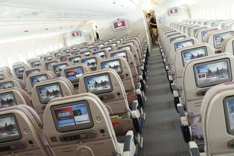 Even in economy the double-decker A380 feels like a large hotel. The seats are 18 inches wide with 32-34 inches of leg room. They are much more comfortable than you might expect and the inflight entertainment system is high tech, having a state-of-the-art In-Flight Entertainment System (IFE).