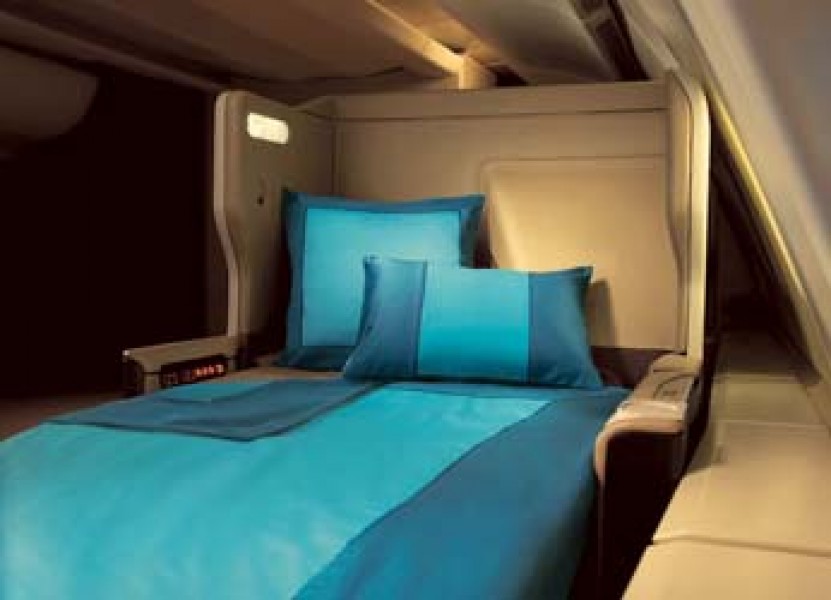 SIA has the largest ever full-flat bed in business class, offering plenty of room to stretch out and enjoy a rejuvenating night’s rest. Drift off into a restful sleep, surrounded by light duvet, larger pillows and fresh linen - sweet dreams are just around the corner. All the conveniences you would expect in an office are provided for in a centralized, all-in-one business panel, which includes an in-seat power supply and USB ports. These unique features, along with built in business software in every seat, allow you to work on office documents, even without a laptop. All you need is a portable USB flash drive. And when it is time to unwind, a wide array of captivating entertainment options from KrisWorld await on an impressive 15.4 inch wide LCD screen. Settle your reading glasses in a snug storage compartment and stow your hand-carry bag in an ample space, all designed for your ultimate convenience. These new cabin products are fitted on Singapore Airlines' new A380 and Boeing 777-300ER aircraft. Available only on selected flights. |