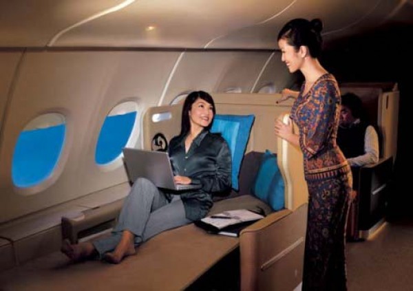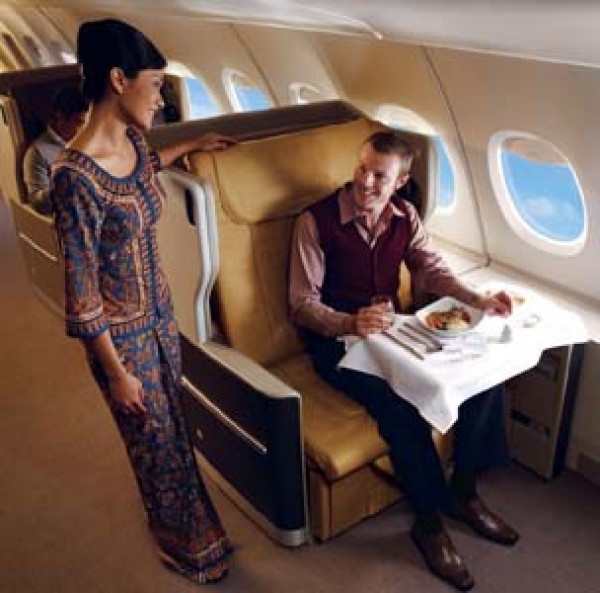 BUSINESS CLASS Amenities & Inflight Entertainment: Featuring a dedicated sleeping surface for added comfort, the new Business Class bed is designed to accomodate virtually any sleeping position. Drift off into a restful sleep surrounded by a light duvet, larger pillows and fresh linen - sweet dreams are just around the corner. The latest entertainment, including audio and video-on-demand, is unveiled on your 15.4-inch personal widescreen LCD. Featuring 100 movies, including the latest blockbusters, and 180 TV shows, Krisworld presents you with your very own cinema in the sky. For the music lover, choose from an extensive library of 700 CDs and over 20 radio channels. Singapore Airlines is also pleased to bring you action-packed 3D games, brought to life on your highest resolution 15.4-inch widescreen LCD in the sky. You can also get down to work with KrisWorld’s suite of office software – another first from Singapore Airlines. With on-demand games, language learning tools and a spread of travel guides, KrisWorld will turn every flight into a voyage of discovery. |