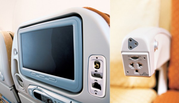 While the first class offers cabin suites... and double beds if you combine two together, it's somehow claustrophobic. It offers privacy...yes... of course. Especially since the Business Class consists of 60 seats making Business Class cabins a little bit noisier, busier and less private than you'd expect. The economy class... well, there's the new USB port offered on every seat plus powerports. Also, upgraded entertainment services (which I experienced to be slow and unreliable, as it froze and needed a reset). The pitch is good, and the seat is decent in Economy class... the LCD screen is huge. |