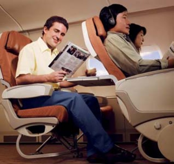 Innovative design minimizes intrusion into your personal space even as the passenger in front reclines. While ergonomic styling of the seat further maximizes knee and legroom. An easily accessible new seatback-mounted handset, personal, non-intrusive reading light and in-seat power supply, are just some of the many intelligent touches designed with you in mind. |