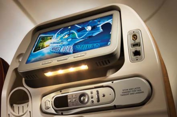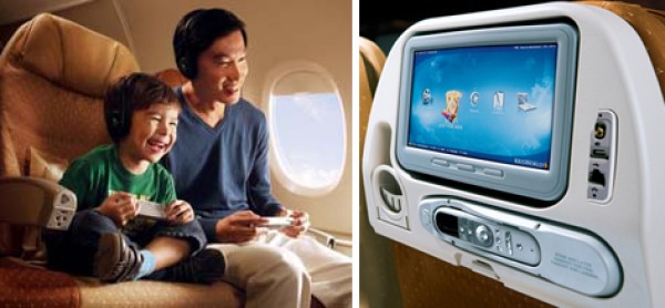 SUITE CLASS: Here you will find a state-of-the-art entertainment system. Imagine a feast of movies, TV shows, music, games, language courses and office software, all on a 23-inch widescreen LCD � the largest in the sky. An exhaustive range of entertainment options, including audio and video-on-demand, leaves you spoilt for choice. Featuring 100 movies, including the latest blockbusters, and more than 180 TV shows, KrisWorld presents you with your very own cinema in the sky. For the music lover, choose from an extensive library of 700 CDs and over 20 radio channels. Singapore Airlines is pleased to bring you exciting 3D games, brought to life on the high resolution monitor. |