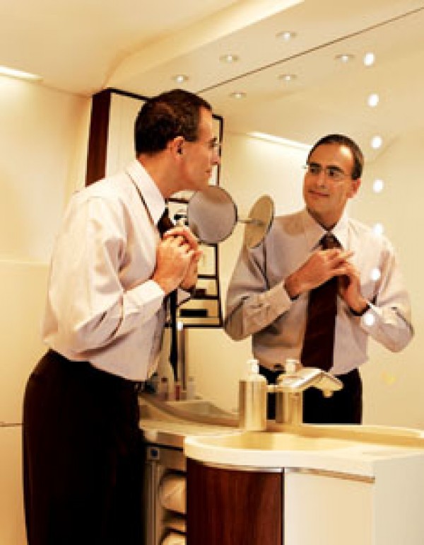 In the SUITE CLASS you can feel even more at home with pajamas and beddings designed by Givenchy. What a luxury :-) Along with the turndown services, the fine linen and plush, full-sized pillows are the perfect touches for a perfect night's sleep. You will have some sensuous Ferragamo toiletries. these finer details ensure that you arrive at your destination feeling refreshed and revitalised. Restrooms feature a full size Hollywood mirror and enhanced lighting. Freshening up never felt so glamorous....isnt that amazing? |